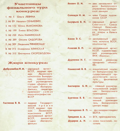 -- пригласительный билет на конкурс красоты «Мiнская прыгажуня-1988» (внутренняя сторона)